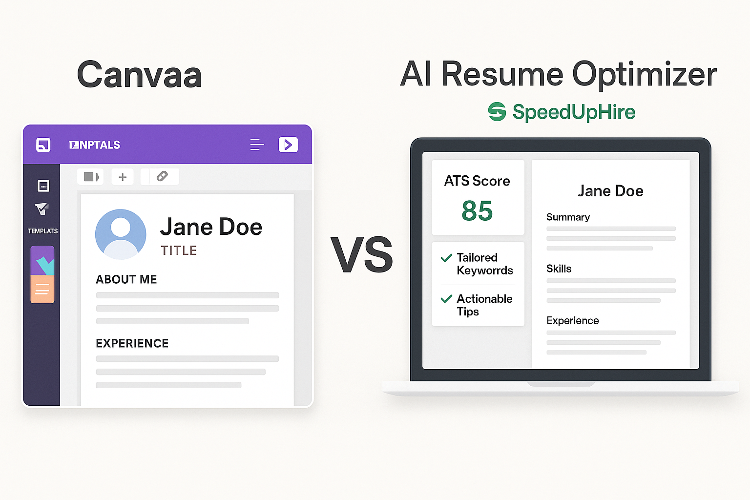 Compare Canva and SpeedUpHire for freshers' resumes. Learn which tool passes ATS screening, which creates better designs, and how to use both effectively. Get real examples, expert insights, and actionable advice for your job search.